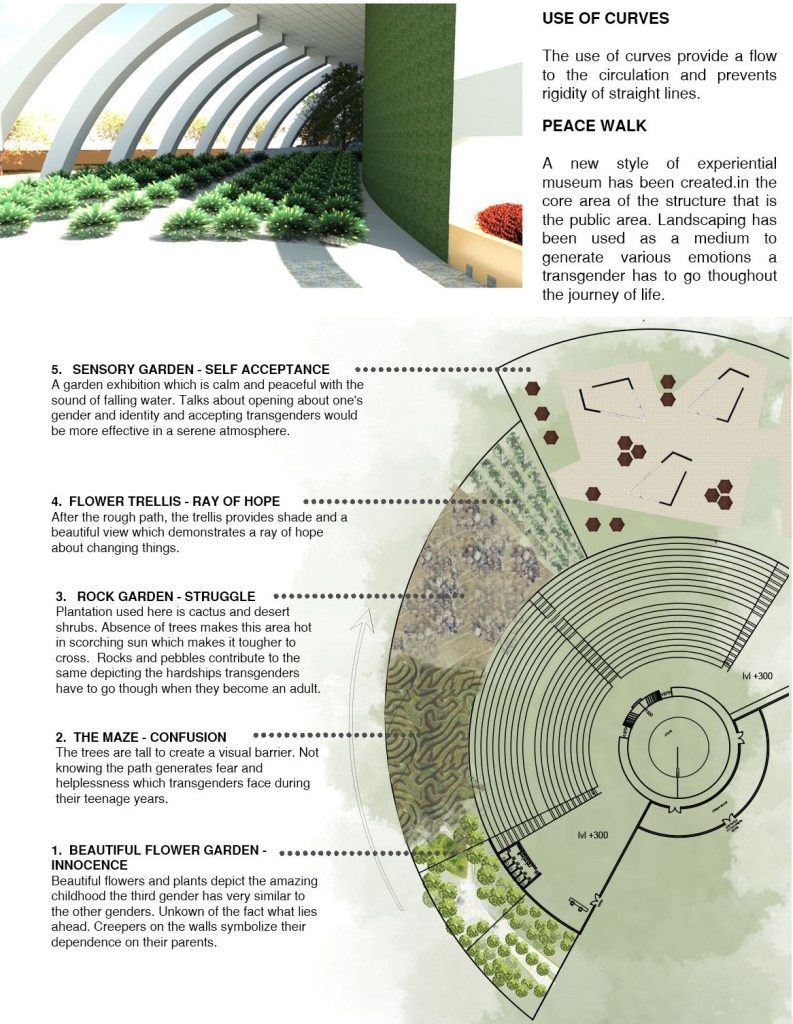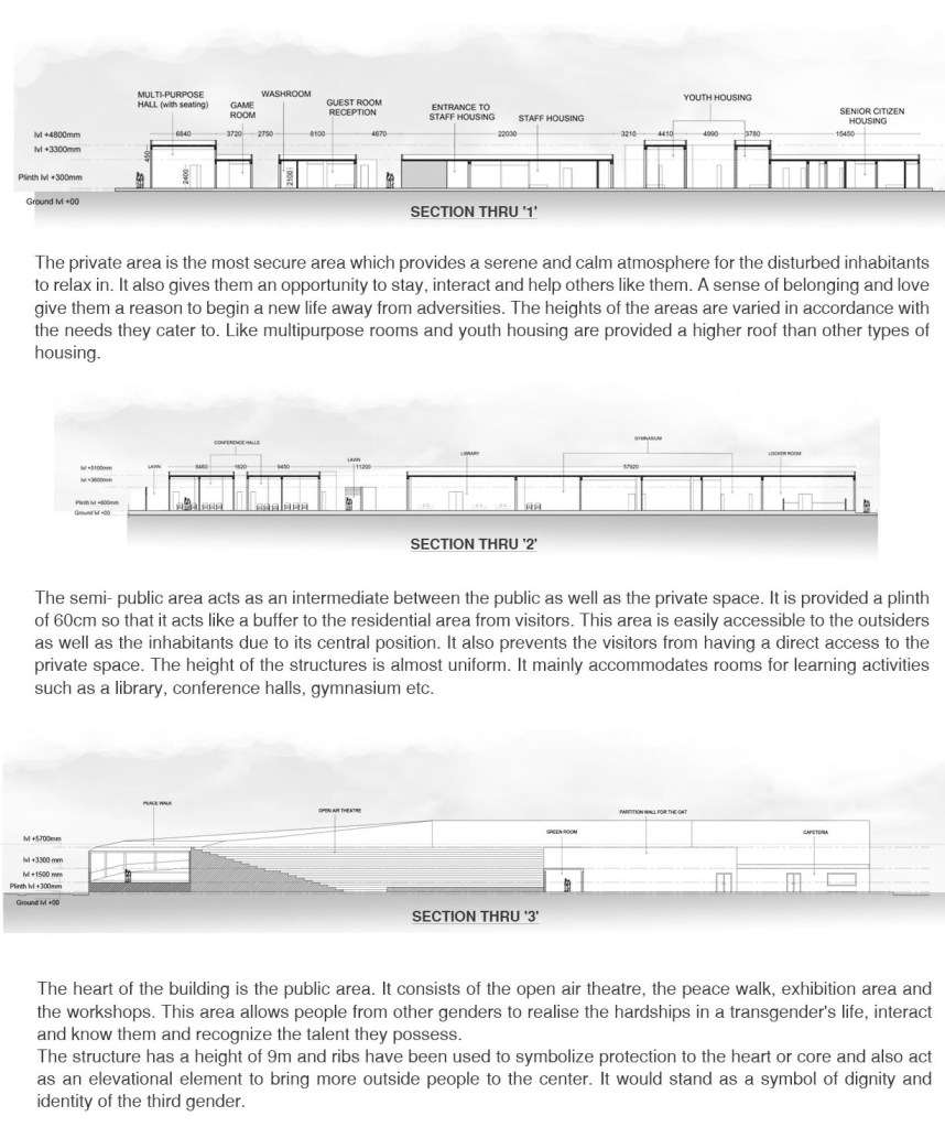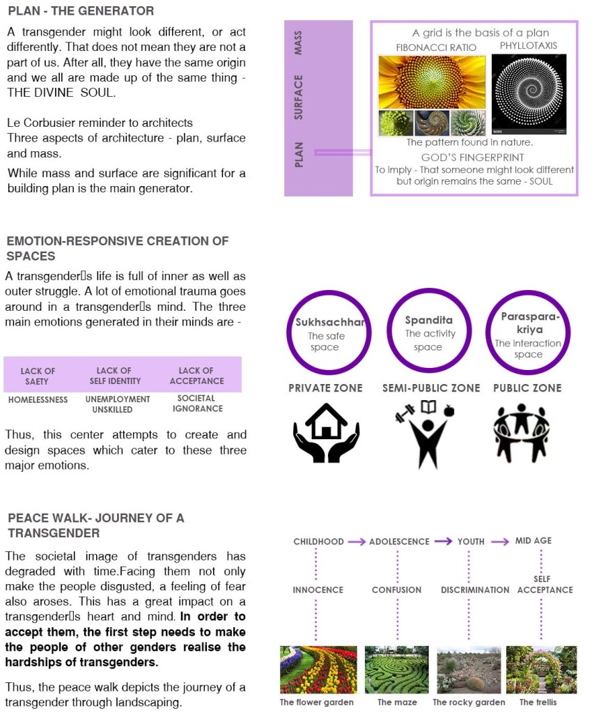 About the Project: Design to amplify the diminishing voices. This project led me to various experiences, I got a chance to meet the minority community of transgenders, understand their problems, celebrate festivals them. My thesis aimed at providing a shelter for the third gender who are deprived of so many facilities, go through mental trauma and need a calming place which can cater to their basic needs, provide them skills to make a living and give a sense of security and togetherness.